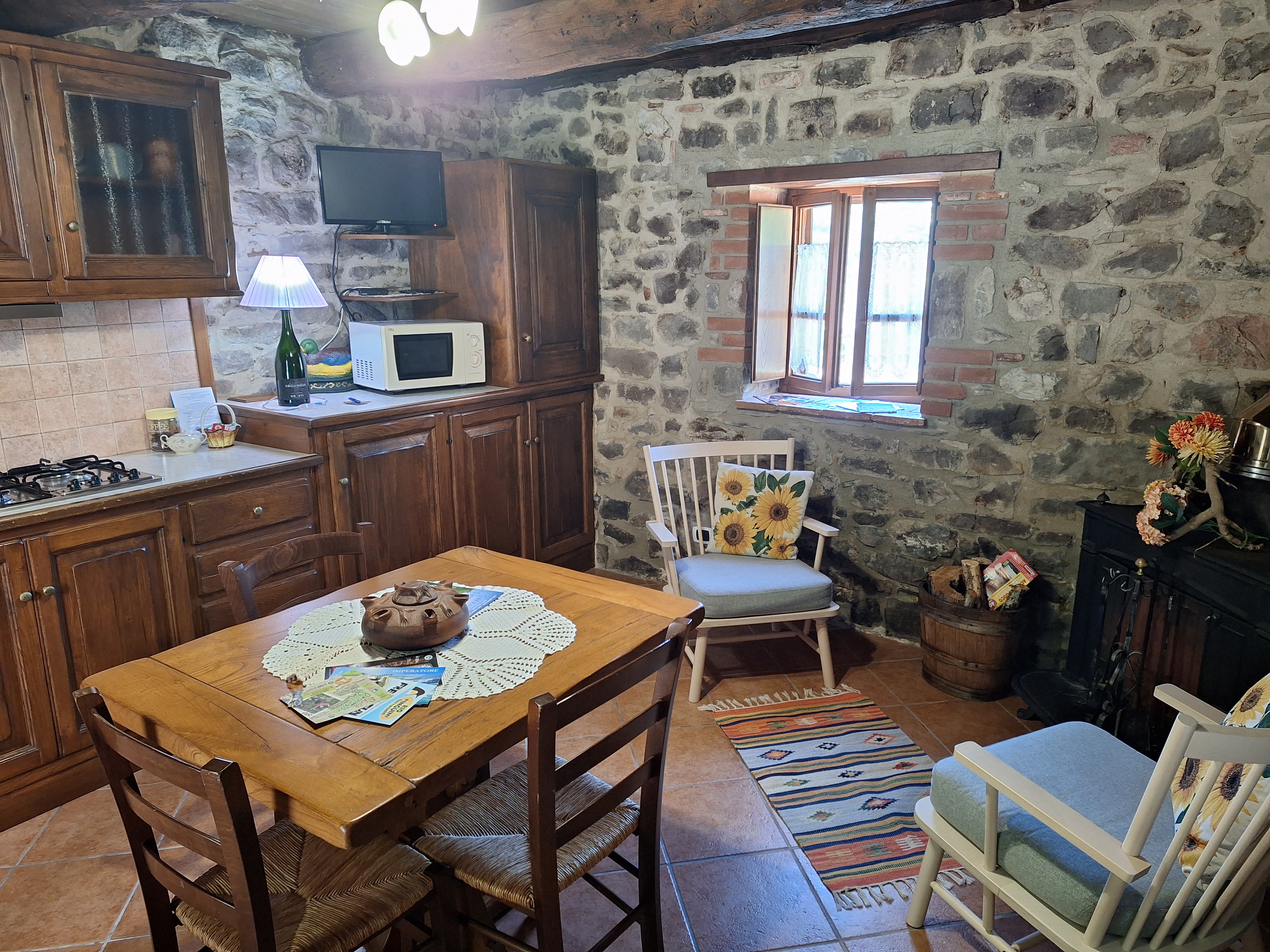 soggiorno con con cucina attrezzata (frigo / freezer, forno a microonde, 4 fuochi,